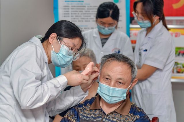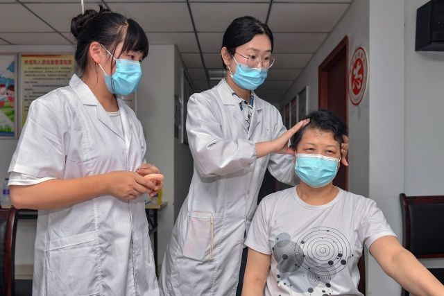 近日,安徽中医药大学针灸推拿学院“青年中医 义诊扶智”志愿服务团队开展“中医中药进基层”活动,组织大学生、研究生为居民群众提供针灸、推拿、拔火罐、刮痧、贴耳穴等中医药医疗卫生保健服务。袁兵 摄